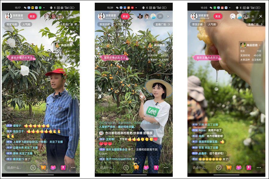 受合川区农委的邀请,团队携直播人员、电商人员及短视频人员一行10余人,于2025年5月18日,前往合川区草街桂林村,帮助农户开展当地特色产品白枇杷的电商销售工作,并取得了一定成效。