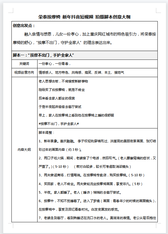 荣泰按摩椅抖音短视频拍摄及发布服务